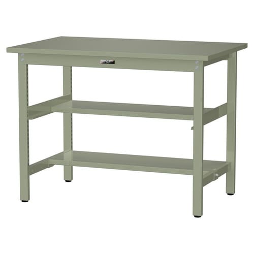 軽量作業台/耐荷重300kg 中間+足元半面棚付 スチール天板 ワークテーブル300 W1200D750H900mm SWSH−1275TS1−GG グリーン 1台【メーカー直送】