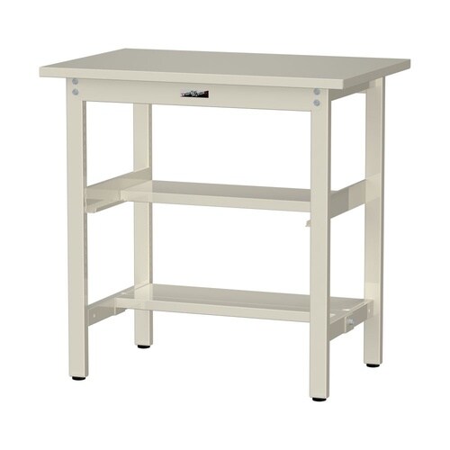 軽量作業台/耐荷重300kg 中間+足元半面棚付 スチール天板 ワークテーブル300 W900D600H900mm SWSH−960TS1−II アイボリー 1台【メーカー直送】