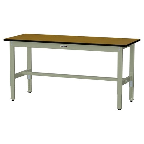 軽量作業台/耐荷重200kg 高さ調整式 ポリエステル天板 ワークテーブル300 W1500D600H600−900mm SWPA−1560−MG 天板木目柄脚グリーン 1台【メーカー直送】