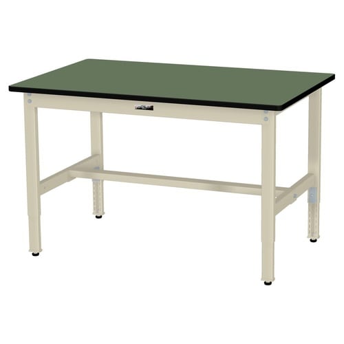 軽量作業台/耐荷重200kg 高さ調整式 塩ビシート天板 ワークテーブル300 W1200D750H600−900mm SWRA−1275−GI 天板グリーン脚アイボリー 1台【メーカー直送】