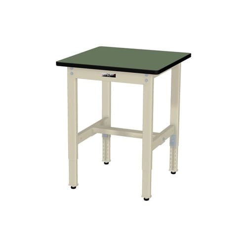 軽量作業台/耐荷重200kg 高さ調整式 塩ビシート天板 ワークテーブル300 W600D600H600−900mm SWRA−660−GI 天板グリーン脚アイボリー 1台【メーカー直送】