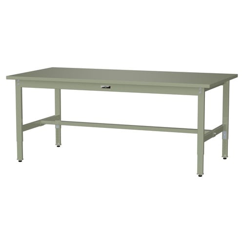 軽量作業台/耐荷重200kg 高さ調整式 スチール天板 ワークテーブル300 W1800D900H600−900mm SWSA−1890−GG グリーン 1台【メーカー直送】