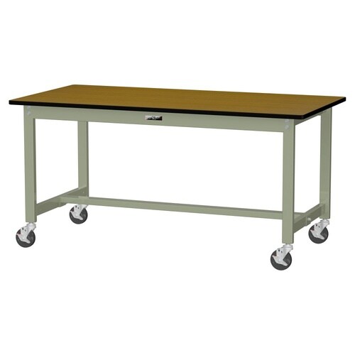 軽量作業台/耐荷重160kg 移動式 ポリエステル天板 ワークテーブル300 W1500D750H740mm SWPC−1575−MG 天板木目柄脚グリーン 1台【メーカー直送】