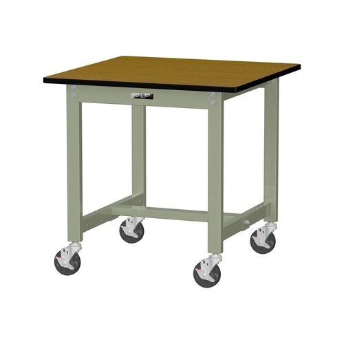 軽量作業台/耐荷重160kg 移動式 ポリエステル天板 ワークテーブル300 W750D750H740mm SWPC−775−MG 天板木目柄脚グリーン 1台【メーカー直送】