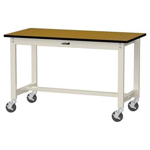 軽量作業台/耐荷重160kg 移動式 ポリエステル天板 ワークテーブル300 W1200D600H740mm SWPC−1260−MI 天板木目柄脚アイボリー 1台【メーカー直送】