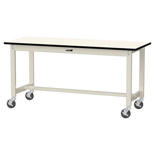 軽量作業台/耐荷重160kg 移動式 ポリエステル天板 ワークテーブル300 W1500D600H740mm SWPC−1560−II アイボリー 1台【メーカー直送】
