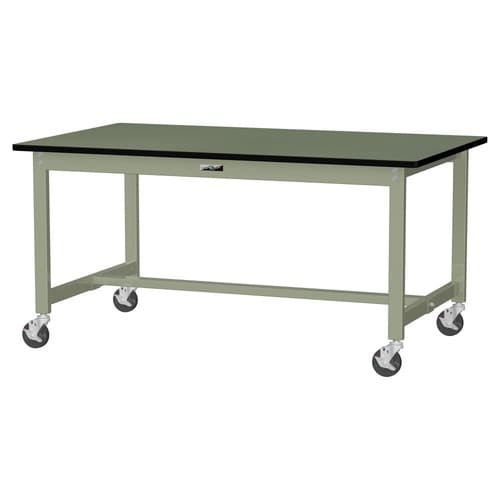 軽量作業台/耐荷重160kg 移動式 塩ビシート天板 ワークテーブル300 W1500D900H740mm SWRC−1590−GG グリーン 1台【メーカー直送】