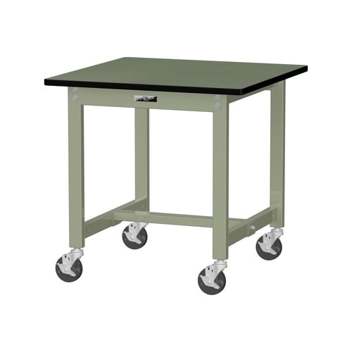 軽量作業台/耐荷重160kg 移動式 塩ビシート天板 ワークテーブル300 W750D750H740mm SWRC−775−GG グリーン 1台【メーカー直送】
