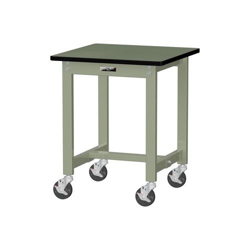 軽量作業台/耐荷重160kg 移動式 塩ビシート天板 ワークテーブル300 W600D600H740mm SWRC−660−GG グリーン 1台【メーカー直送】
