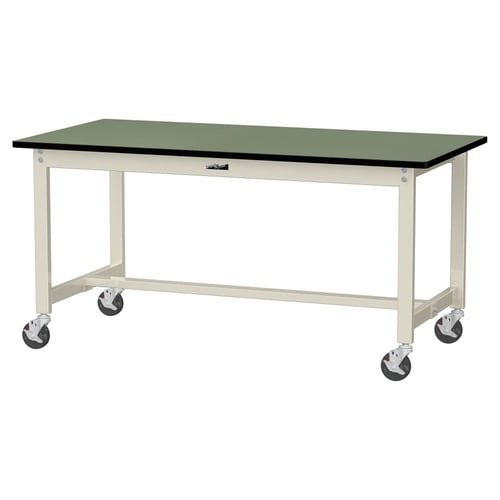軽量作業台/耐荷重160kg 移動式 塩ビシート天板 ワークテーブル300 W1500D750H740mm SWRC−1575−GI 天板グリーン脚アイボリー 1台【メーカー直送】