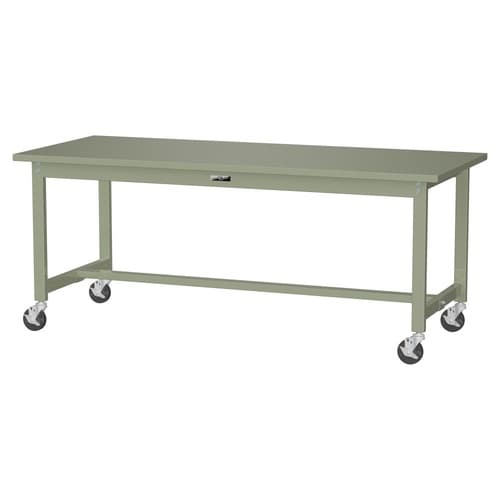軽量作業台/耐荷重160kg 移動式 スチール天板 ワークテーブル300 W1800D750H740mm SWSC−1875−GG グリーン 1台【メーカー直送】