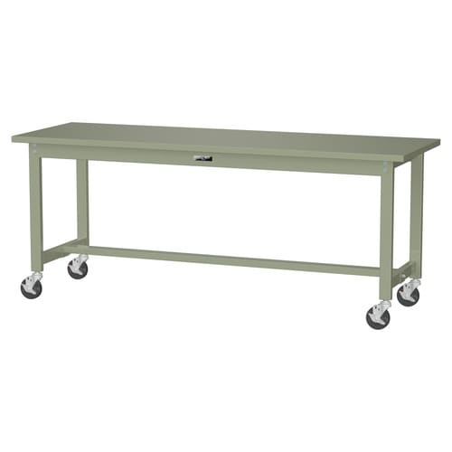 軽量作業台/耐荷重160kg 移動式 スチール天板 ワークテーブル300 W1800D600H740mm SWSC−1860−GG グリーン 1台【メーカー直送】