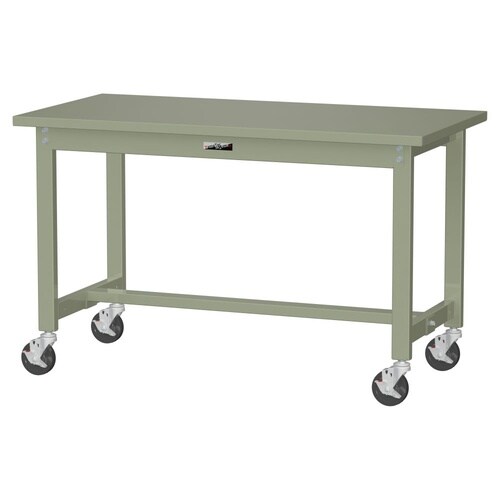 軽量作業台/耐荷重160kg 移動式 スチール天板 ワークテーブル300 W1200D600H740mm SWSC−1260−GG グリーン 1台【メーカー直送】