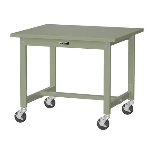 軽量作業台/耐荷重160kg 移動式 スチール天板 ワークテーブル300 W900D750H740mm SWSC−975−GG グリーン 1台【メーカー直送】