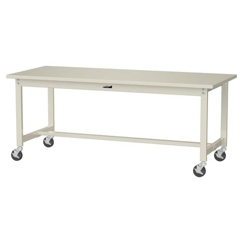 軽量作業台/耐荷重160kg 移動式 スチール天板 ワークテーブル300 W1800D750H740mm SWSC−1875−II アイボリー 1台【メーカー直送】