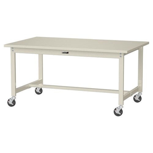軽量作業台/耐荷重160kg 移動式 スチール天板 ワークテーブル300 W1500D900H740mm SWSC−1590−II アイボリー 1台【メーカー直送】