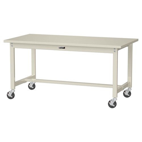 軽量作業台/耐荷重160kg 移動式 スチール天板 ワークテーブル300 W1500D750H740mm SWSC−1575−II アイボリー 1台【メーカー直送】