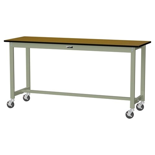 軽量作業台/耐荷重160kg 移動式 ポリエステル天板 ワークテーブル300 W1800D600H900mm SWPHC−1860−MG 天板木目柄脚グリーン 1台【メーカー直送】