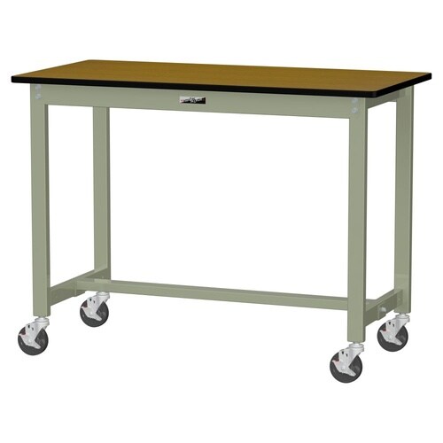 軽量作業台/耐荷重160kg 移動式 ポリエステル天板 ワークテーブル300 W1200D600H900mm SWPHC−1260−MG 天板木目柄脚グリーン 1台【メーカー直送】
