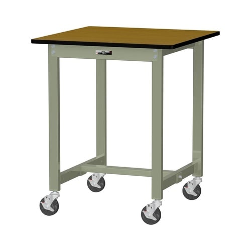 軽量作業台/耐荷重160kg 移動式 ポリエステル天板 ワークテーブル300 W750D750H900mm SWPHC−775−MG 天板木目柄脚グリーン 1台【メーカー直送】