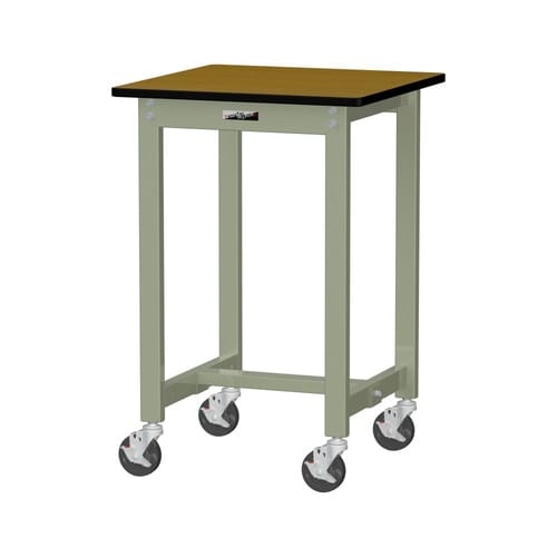 軽量作業台/耐荷重160kg 移動式 ポリエステル天板 ワークテーブル300 W600D600H900mm SWPHC−660−MG 天板木目柄脚グリーン 1台【メーカー直送】