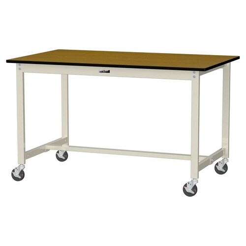軽量作業台/耐荷重160kg 移動式 ポリエステル天板 ワークテーブル300 W1500D900H900mm SWPHC−1590−MI 天板木目柄脚アイボリー 1台【メーカー直送】