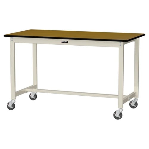 軽量作業台/耐荷重160kg 移動式 ポリエステル天板 ワークテーブル300 W1500D750H900mm SWPHC−1575−MI 天板木目柄脚アイボリー 1台【メーカー直送】