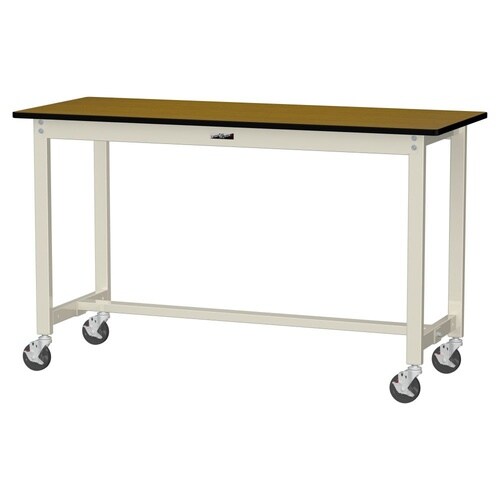 軽量作業台/耐荷重160kg 移動式 ポリエステル天板 ワークテーブル300 W1500D600H900mm SWPHC−1560−MI 天板木目柄脚アイボリー 1台【メーカー直送】