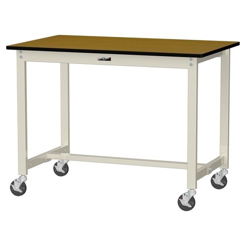 軽量作業台/耐荷重160kg 移動式 ポリエステル天板 ワークテーブル300 W1200D750H900mm SWPHC−1275−MI 天板木目柄脚アイボリー 1台【メーカー直送】