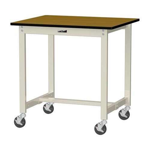 軽量作業台/耐荷重160kg 移動式 ポリエステル天板 ワークテーブル300 W900D750H900mm SWPHC−975−MI 天板木目柄脚アイボリー 1台【メーカー直送】
