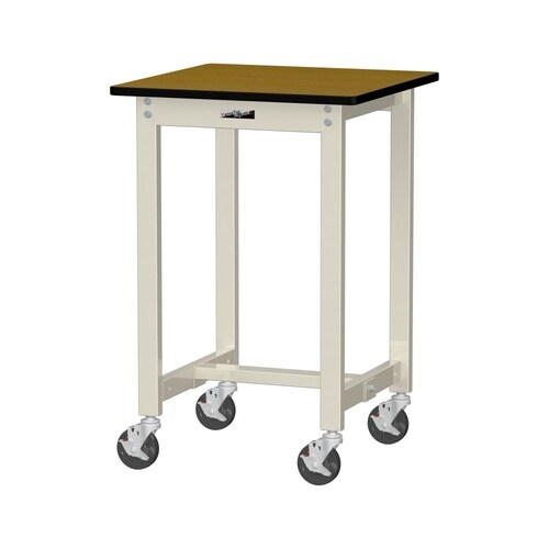 軽量作業台/耐荷重160kg 移動式 ポリエステル天板 ワークテーブル300 W600D600H900mm SWPHC−660−MI 天板木目柄脚アイボリー 1台【メーカー直送】