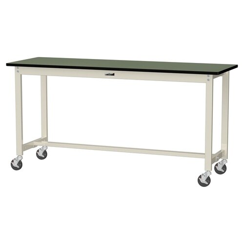 軽量作業台/耐荷重160kg 移動式 塩ビシート天板 ワークテーブル300 W1800D600H900mm SWRHC−1860−GI 天板グリーン脚アイボリー 1台【メーカー直送】