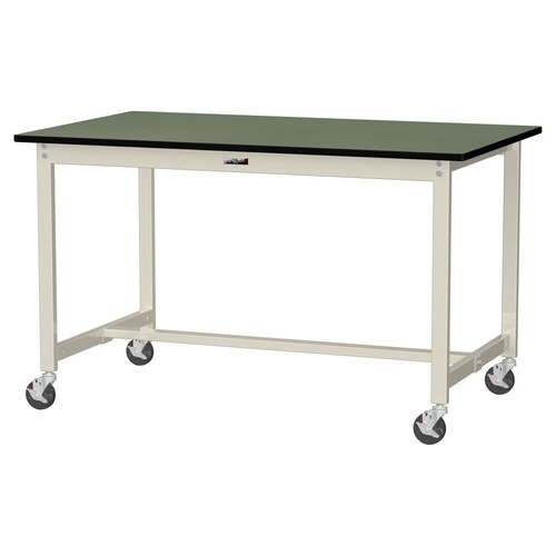 軽量作業台/耐荷重160kg 移動式 塩ビシート天板 ワークテーブル300 W1500D900H900mm SWRHC−1590−GI 天板グリーン脚アイボリー 1台【メーカー直送】