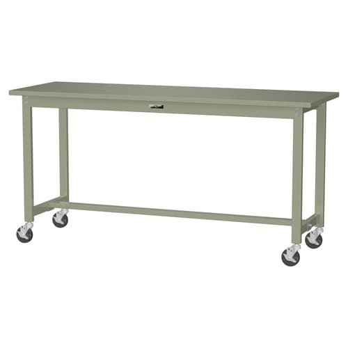 軽量作業台/耐荷重160kg 移動式 スチール天板 ワークテーブル300 W1800D600H900mm SWSHC−1860−GG グリーン 1台【メーカー直送】