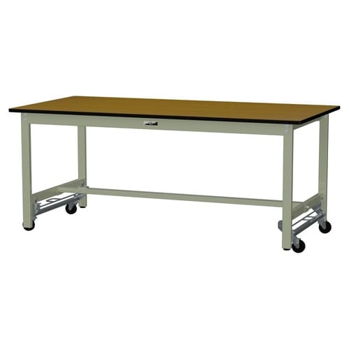軽量作業台/耐荷重300kg固定時 ワンタッチ移動式 ポリエステル天板 ワークテーブル300 W1800D900H740mm SWPU−1890−MG 天板木目柄脚グリーン 1台【メーカー直送】