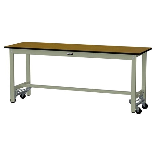 軽量作業台/耐荷重300kg固定時 ワンタッチ移動式 ポリエステル天板 ワークテーブル300 W1800D600H740mm SWPU−1860−MG 天板木目柄脚グリーン 1台【メーカー直送】