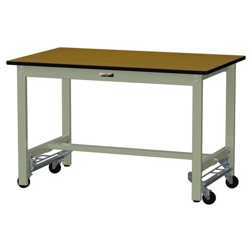 軽量作業台/耐荷重300kg固定時 ワンタッチ移動式 ポリエステル天板 ワークテーブル300 W1200D750H740mm SWPU−1275−MG 天板木目柄脚グリーン 1台【メーカー直送】