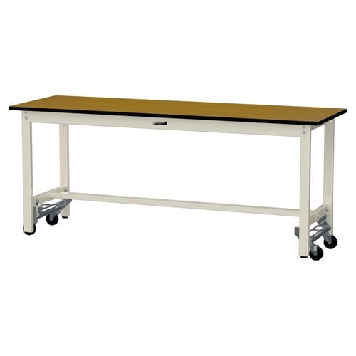軽量作業台/耐荷重300kg固定時 ワンタッチ移動式 ポリエステル天板 ワークテーブル300 W1800D600H740mm SWPU−1860−MI 天板木目柄脚アイボリー 1台【メーカー直送】
