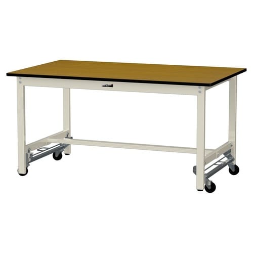 軽量作業台/耐荷重300kg固定時 ワンタッチ移動式 ポリエステル天板 ワークテーブル300 W1500D900H740mm SWPU−1590−MI 天板木目柄脚アイボリー 1台【メーカー直送】