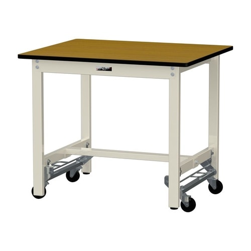 軽量作業台/耐荷重300kg固定時 ワンタッチ移動式 ポリエステル天板 ワークテーブル300 W900D750H740mm SWPU−975−MI 天板木目柄脚アイボリー 1台【メーカー直送】