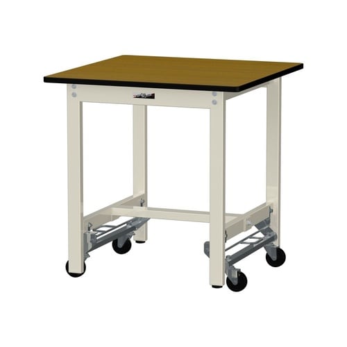 軽量作業台/耐荷重300kg固定時 ワンタッチ移動式 ポリエステル天板 ワークテーブル300 W750D750H740mm SWPU−775−MI 天板木目柄脚アイボリー 1台【メーカー直送】