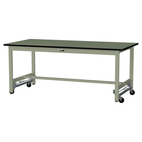 軽量作業台/耐荷重300kg固定時 ワンタッチ移動式 塩ビシート天板 ワークテーブル300 W1800D900H740mm SWRU−1890−GG グリーン 1台【メーカー直送】