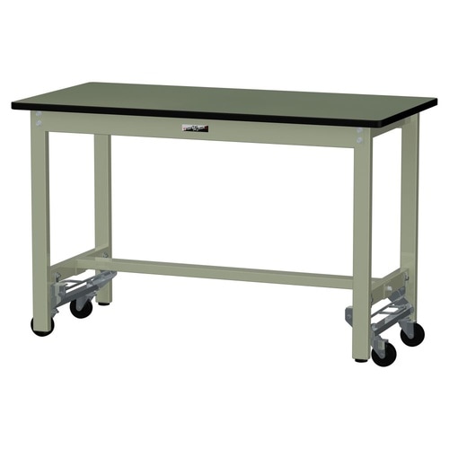 軽量作業台/耐荷重300kg固定時 ワンタッチ移動式 塩ビシート天板 ワークテーブル300 W1200D600H740mm SWRU−1260−GG グリーン 1台【メーカー直送】