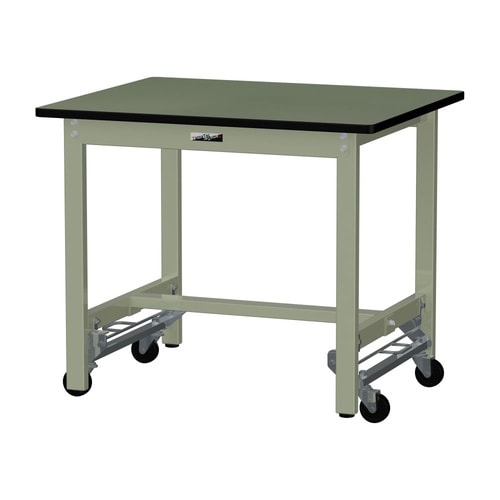 軽量作業台/耐荷重300kg固定時 ワンタッチ移動式 塩ビシート天板 ワークテーブル300 W900D750H740mm SWRU−975−GG グリーン 1台【メーカー直送】