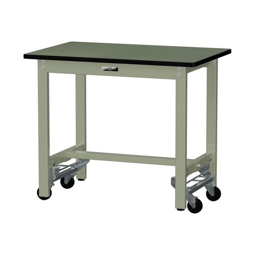 軽量作業台/耐荷重300kg固定時 ワンタッチ移動式 塩ビシート天板 ワークテーブル300 W900D600H740mm SWRU−960−GG グリーン 1台【メーカー直送】