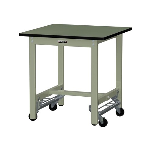 軽量作業台/耐荷重300kg固定時 ワンタッチ移動式 塩ビシート天板 ワークテーブル300 W750D750H740mm SWRU−775−GG グリーン 1台【メーカー直送】