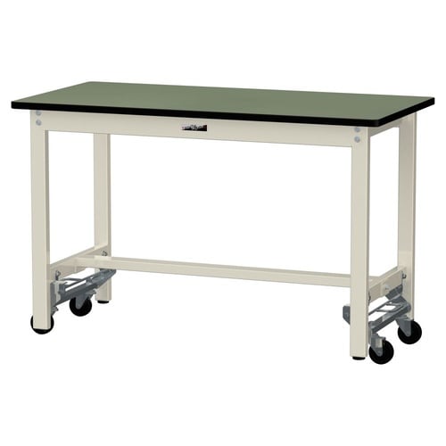 軽量作業台/耐荷重300kg固定時 ワンタッチ移動式 塩ビシート天板 ワークテーブル300 W1200D600H740mm SWRU−1260−GI 天板グリーン脚アイボリー 1台【メーカー直送】