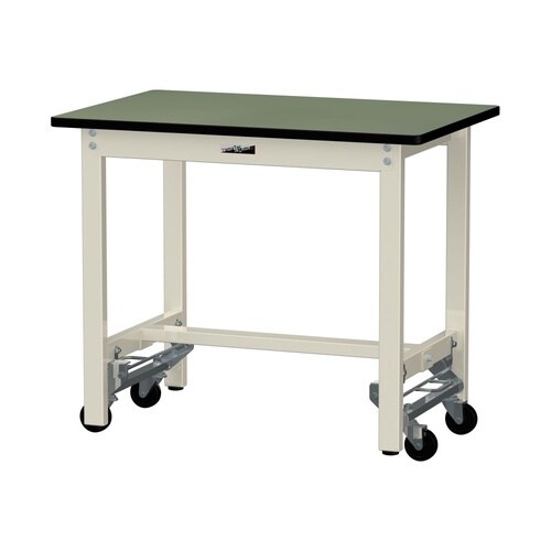 軽量作業台/耐荷重300kg固定時 ワンタッチ移動式 塩ビシート天板 ワークテーブル300 W900D600H740mm SWRU−960−GI 天板グリーン脚アイボリー 1台【メーカー直送】