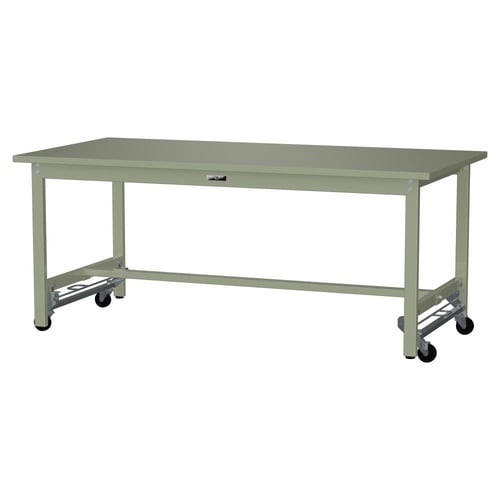 軽量作業台/耐荷重300kg固定時 ワンタッチ移動式 スチール天板 ワークテーブル300 W1800D900H740mm SWSU−1890−GG グリーン 1台【メーカー直送】