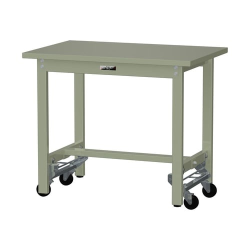 軽量作業台/耐荷重300kg固定時 ワンタッチ移動式 スチール天板 ワークテーブル300 W900D600H740mm SWSU−960−GG グリーン 1台【メーカー直送】